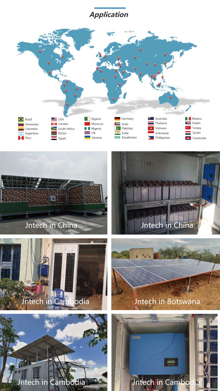 El sistema solar aislado se compone de un módulo fotovoltaico, un inversor solar aislado, un controlador de carga MPPT y una batería. El inversor solar aislado es el elemento central del sistema fotovoltaico y convierte la corriente continua (CC) producida por los paneles solares en corriente alterna (CA) para proporcionar energía eléctrica a las aplicaciones. El controlador de carga MPPT carga la electricidad solar en las baterías. Cuando la energía solar es insuficiente para las cargas, o durante la noche, la batería se descarga para reponer la energía.